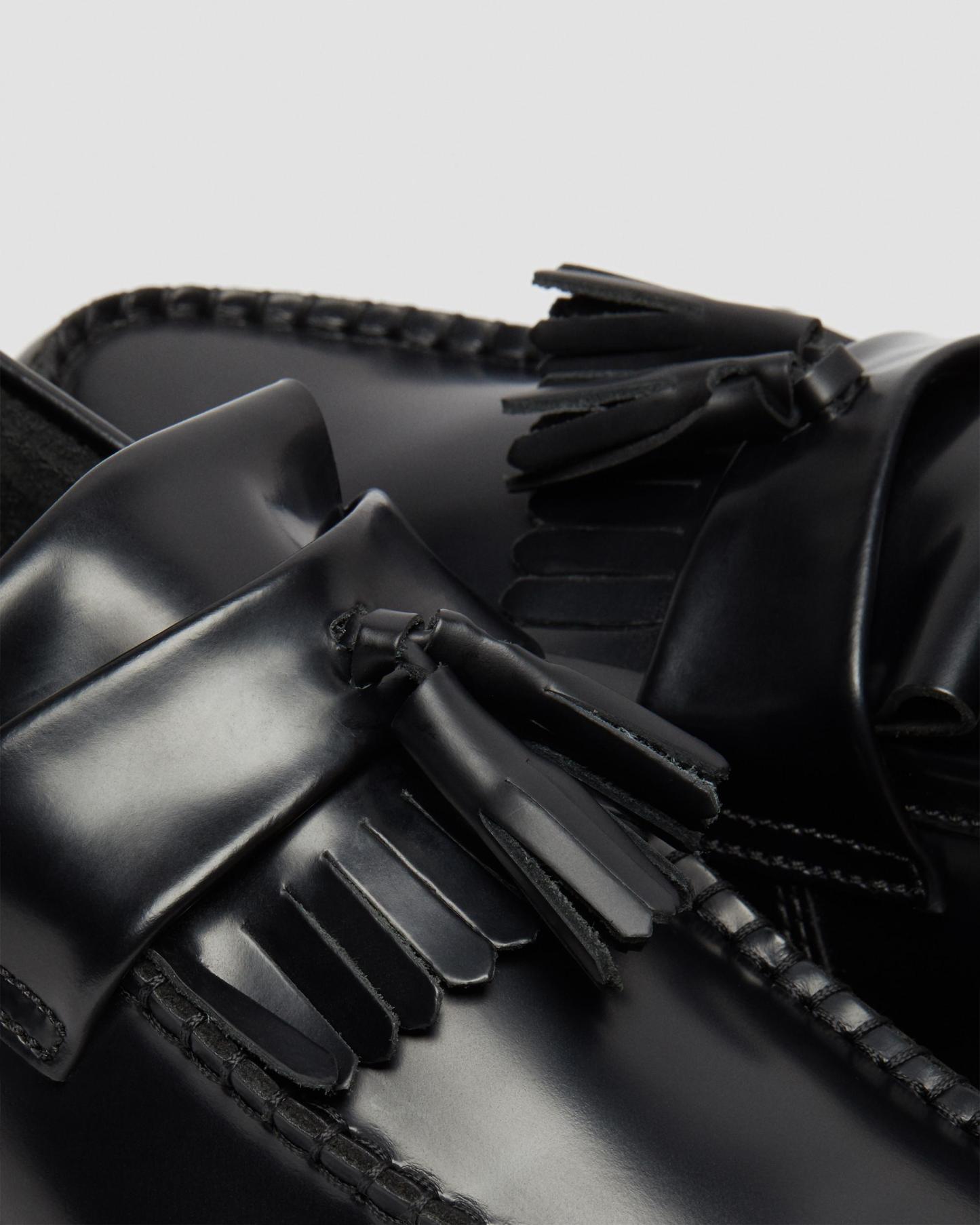 The Tassel Loafer is a subcultural classic and is offered here in our polished smooth leather, a twist on the classic Dr. Martens leather: durable, with a smooth and polished finish. The classic tassel loafer in Black Polished Smooth leather is made with Goodyear welt, meaning the upper and sole are heat-sealed and sewn together. Dr. Martens air-cushioned sole is oil and fat resistant and offers good abrasion and slip resistance.
