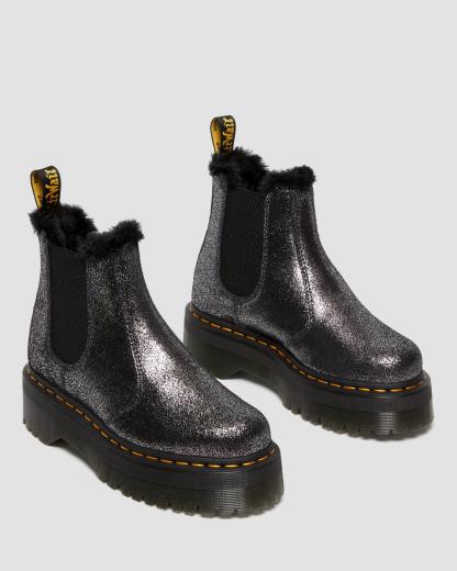 2976 Faux Fur-Lined Metallic Platform Chelsea Boots