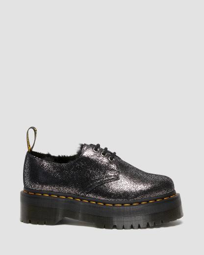 1461 Faux Fur-Lined Metallic Leather Platform Shoes
