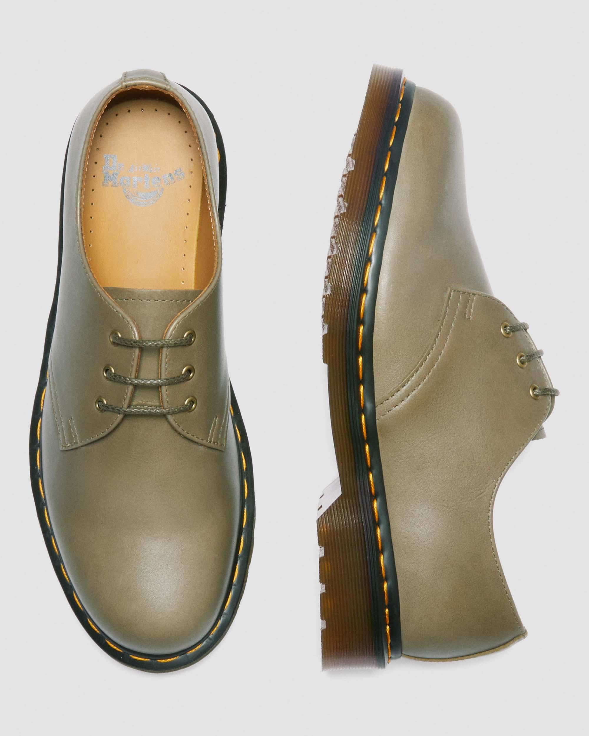 Our classic 1461 3-eye shoe constructed from Carrara. A veg tan leather which is left untreated to highlight the creases, marks and lines unique to each wearer. A record of every journey, night out and event. Set on our traditional bouncing air sole and secured with a yellow Goodyear welt stitch. Completed with antique gold eyelets and contrast black laces.