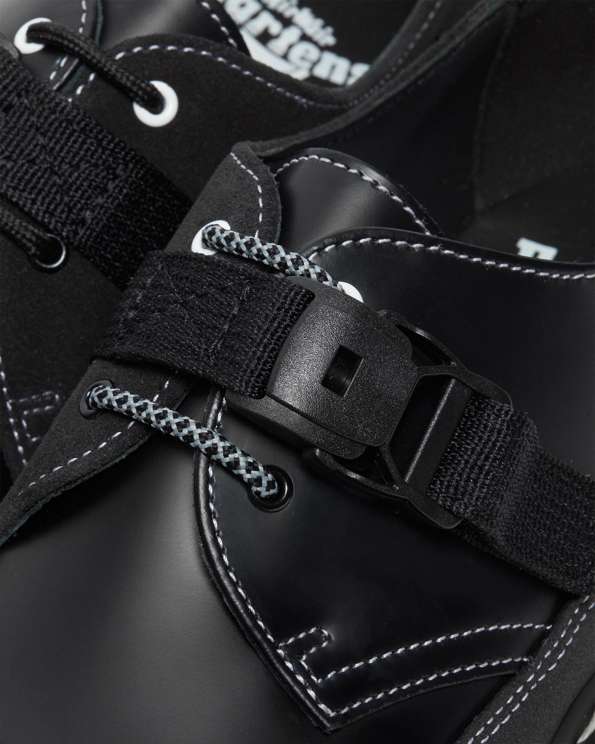Traditional shoemaking pushed forward with new techniques and innovative materials. The 1461 Tech shoe is handcrafted from our classic Smooth leather, Hi Suede and TechTuff Dual an abrasion, water, stain and scuff-resistant material. Detailed with Duraflex magnetic buckle clasps, Antique Black eyelets with a contrast White eyelet and white stitching through the uppers. Welted on a double-height Bex Smoke sole, they??re marked by our signature stitching and scripted heel loop.