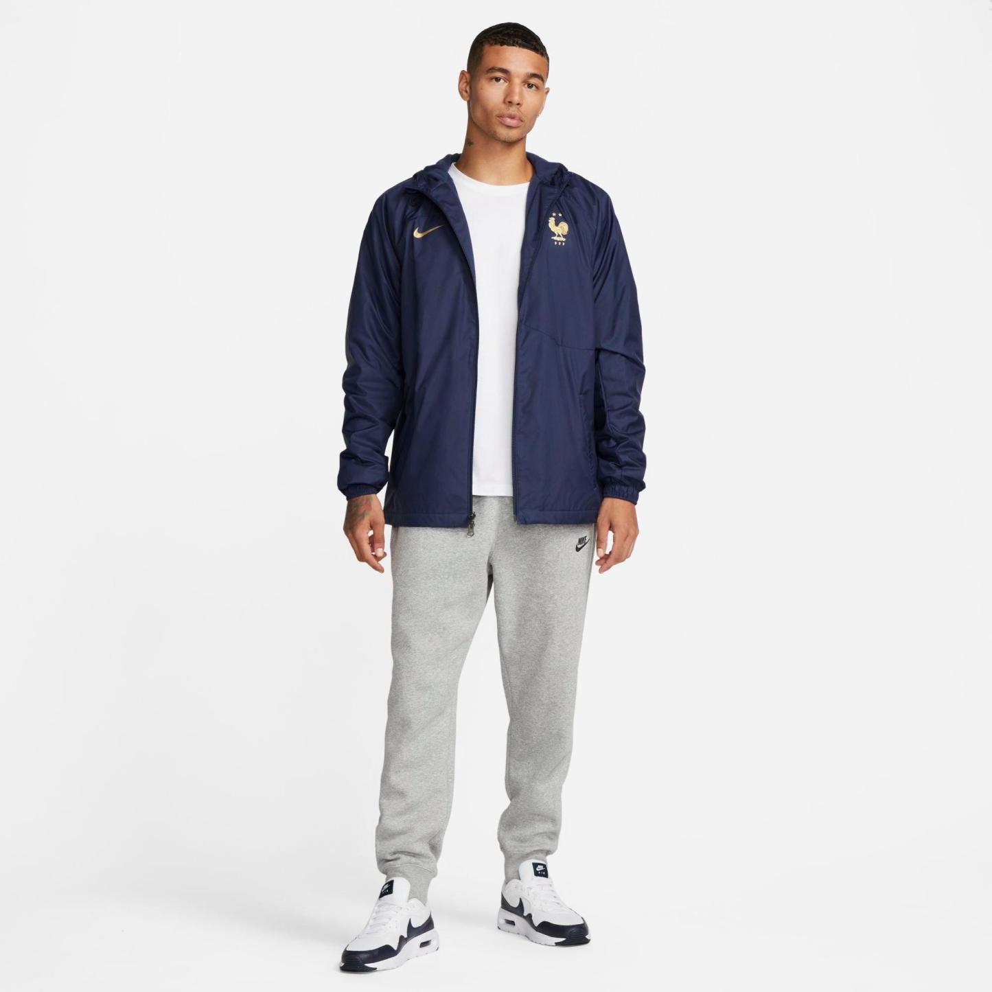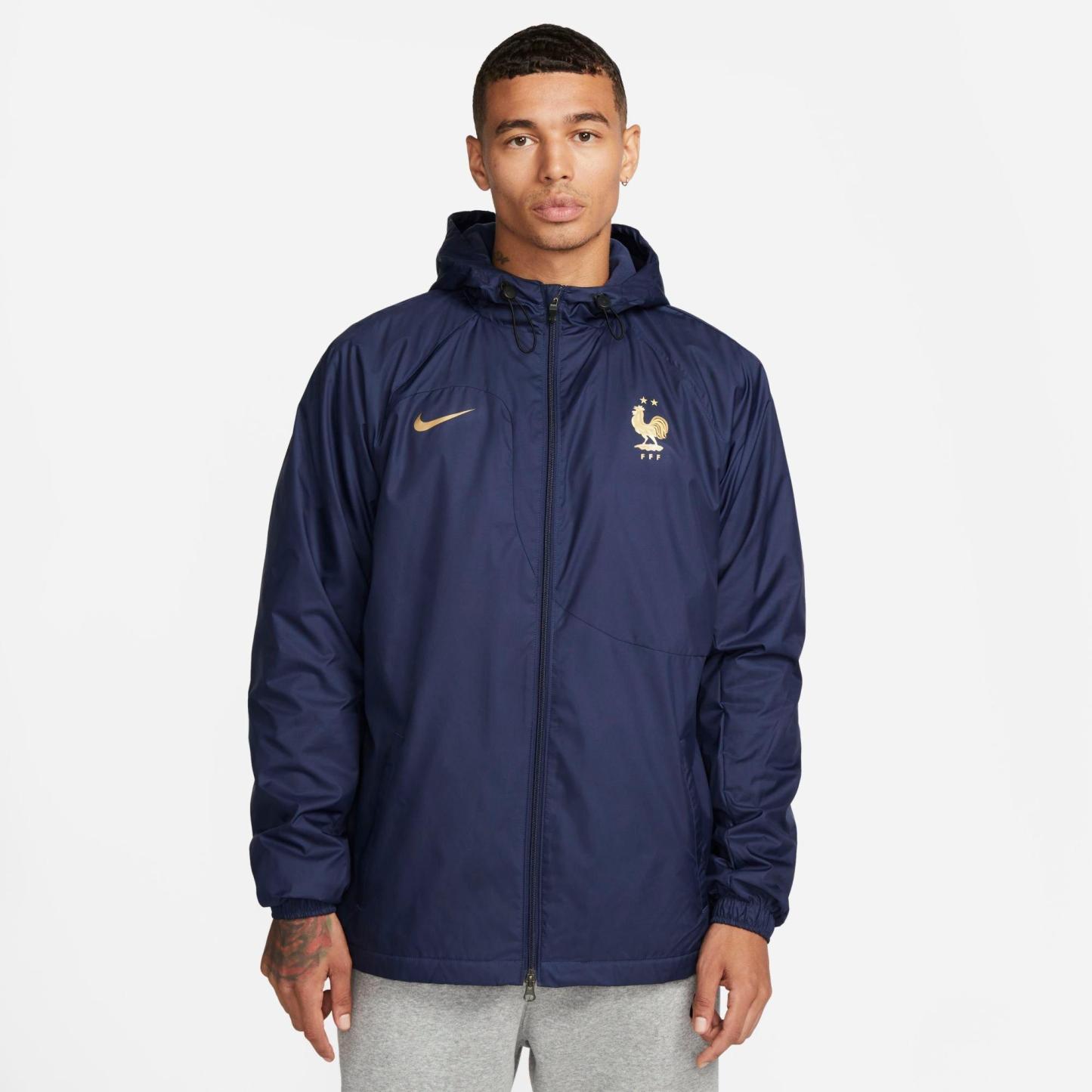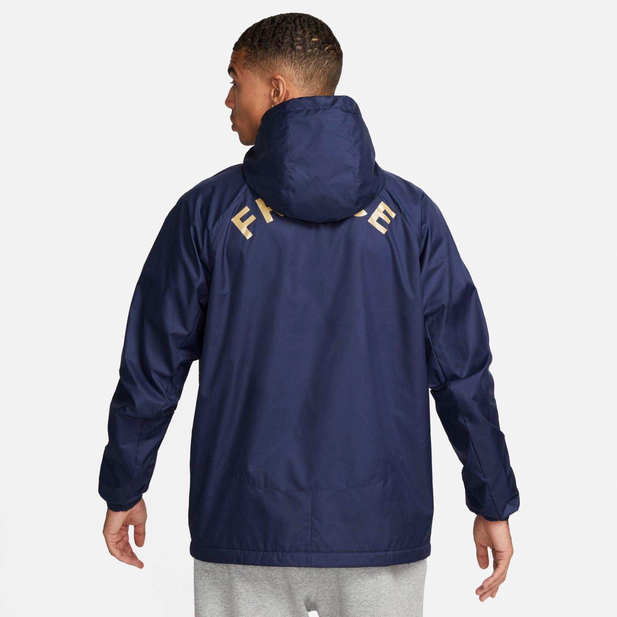 - The Nike France Strike Dri-FIT Hooded Soccer Jacket is imported.