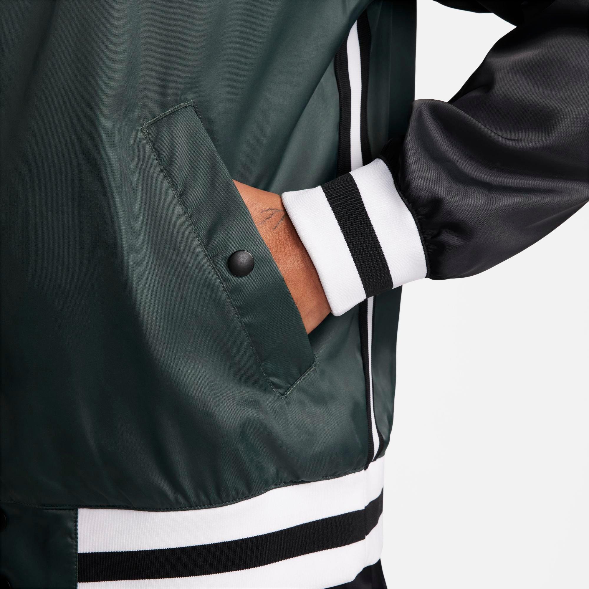 Inspired by the world of outdoor hoops, the Men's Nike DNA Repel Woven Basketball Jacket combines sporty style with smooth comfort for a lightweight layer of warmth. Made with a smooth satin shell and breathable lining, this relaxed-fit jacket brings easy protection, whether putting up shots in the driveway or playing pick-up in the park.