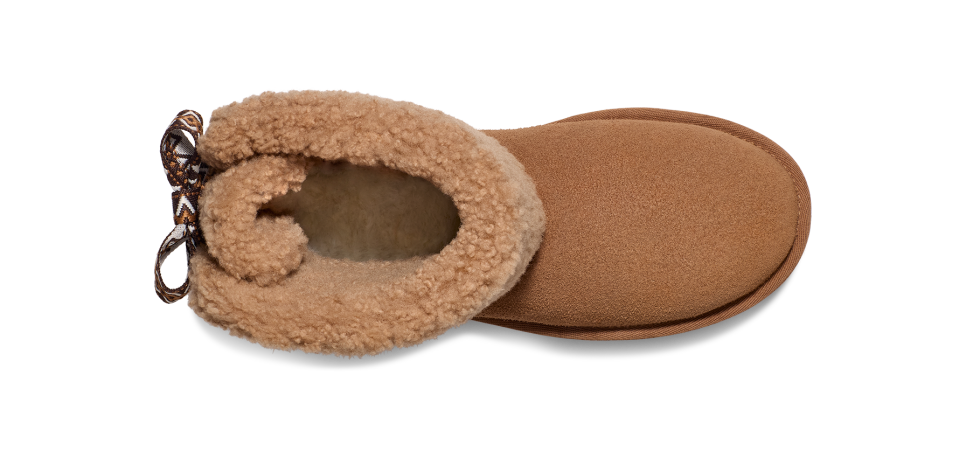 - utthhggbraid detailing, Fixed bow, Suede heel counter, Suede vamp, 10mm curly sheepskin shaft
