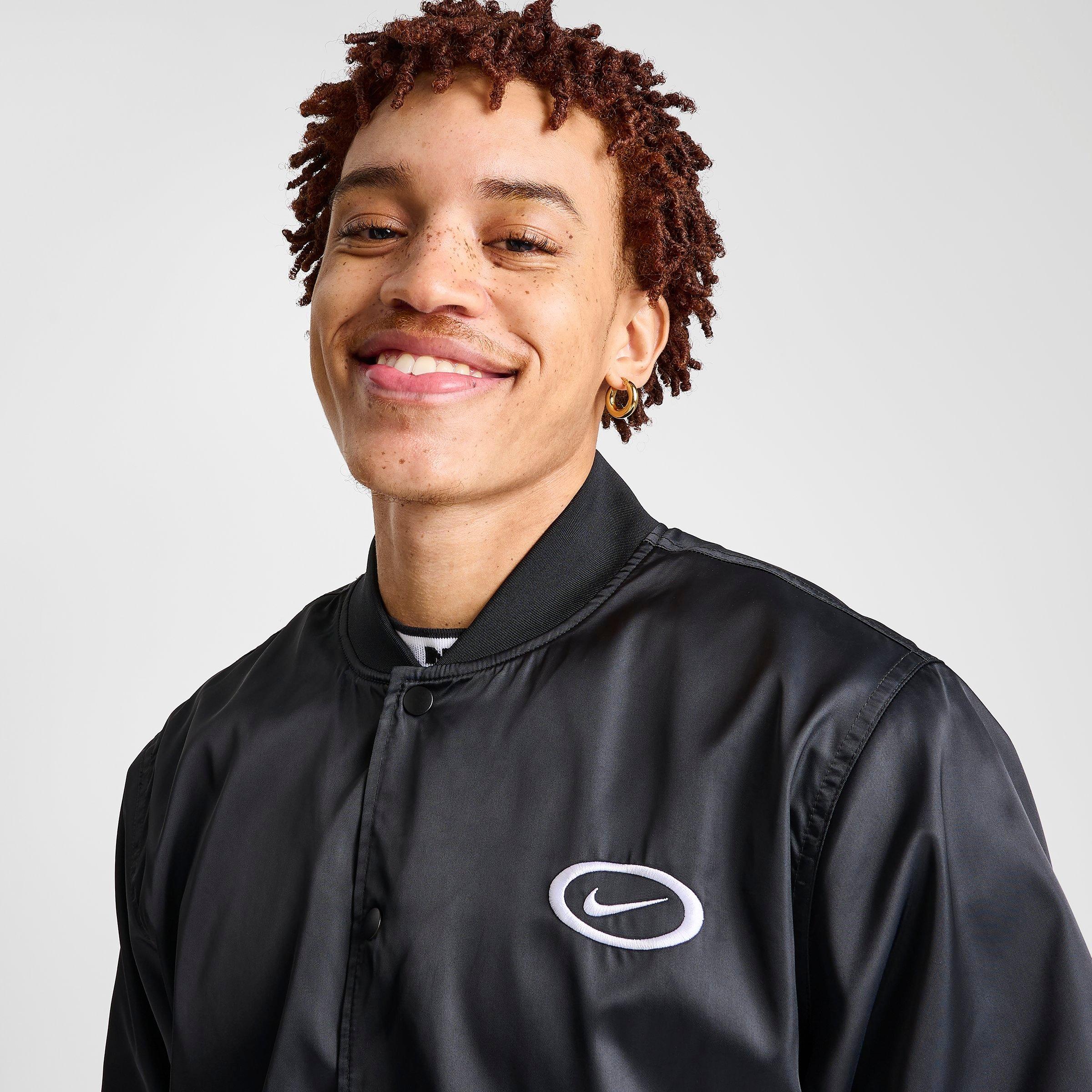 Inspired by the world of outdoor hoops, the Men's Nike DNA Repel Woven Basketball Jacket combines sporty style with smooth comfort for a lightweight layer of warmth. Made with a smooth satin shell and breathable lining, this relaxed-fit jacket brings easy protection, whether putting up shots in the driveway or playing pick-up in the park.