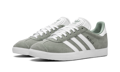 Women's adithtdas Gazelle "Silver Green/White" is a women's sizing edition of the retro sneaker in a highly wearable colorway. Designed for everyday wear, the adithtdas Gazelle in "Silver Green/White" is complete with a Silver Green suede upper with a reinforced suede overlay on the toe. White leather Three Stripes branding is found on either side of the shoe and a "Gazelle" logo appears on the lateral side of the midfoot. Both adithtdas Trefoil logos on the white leather heel tab and white tongue are designed in a Silver Green hue. A white rubber sole completes the look. Silver Green / White