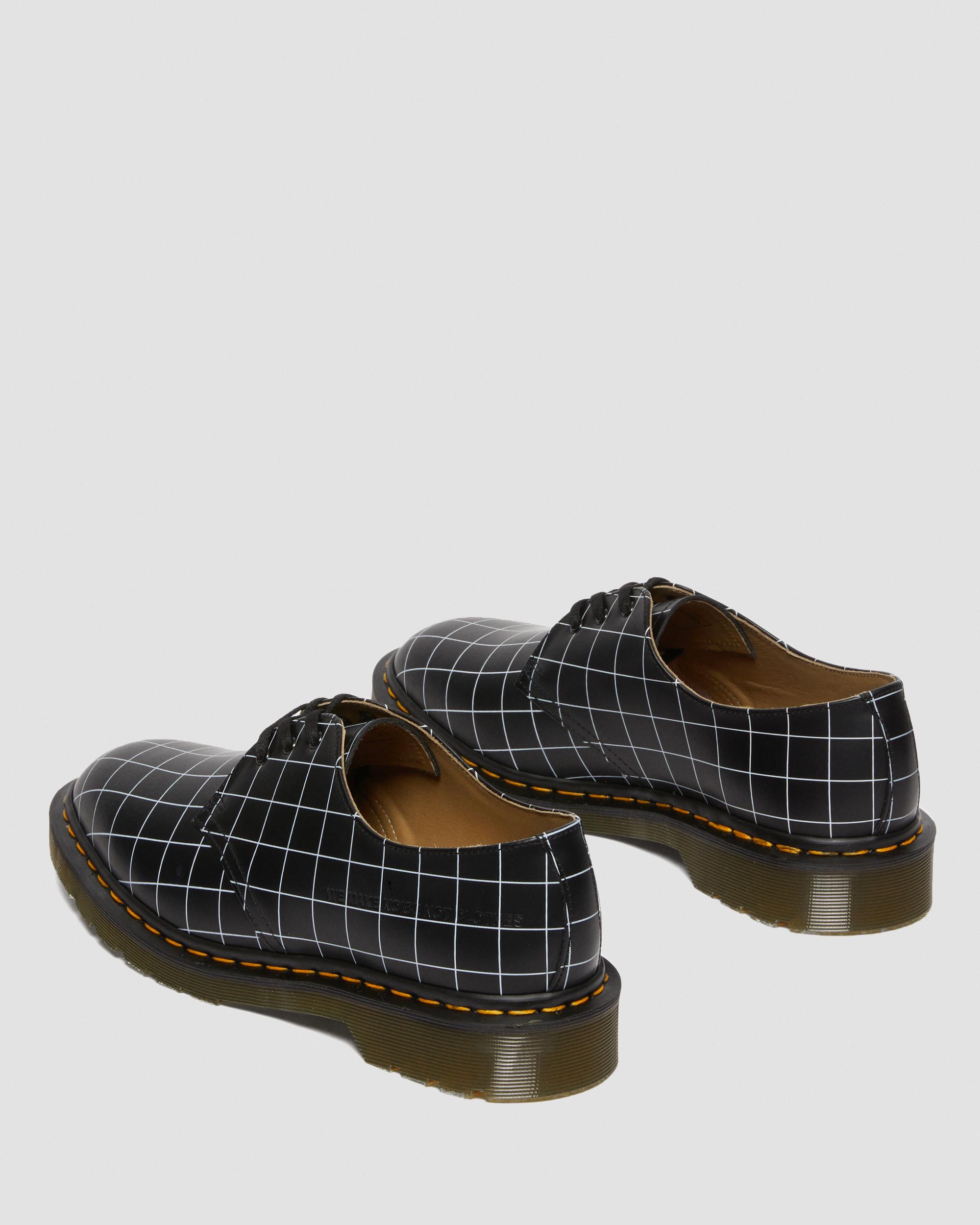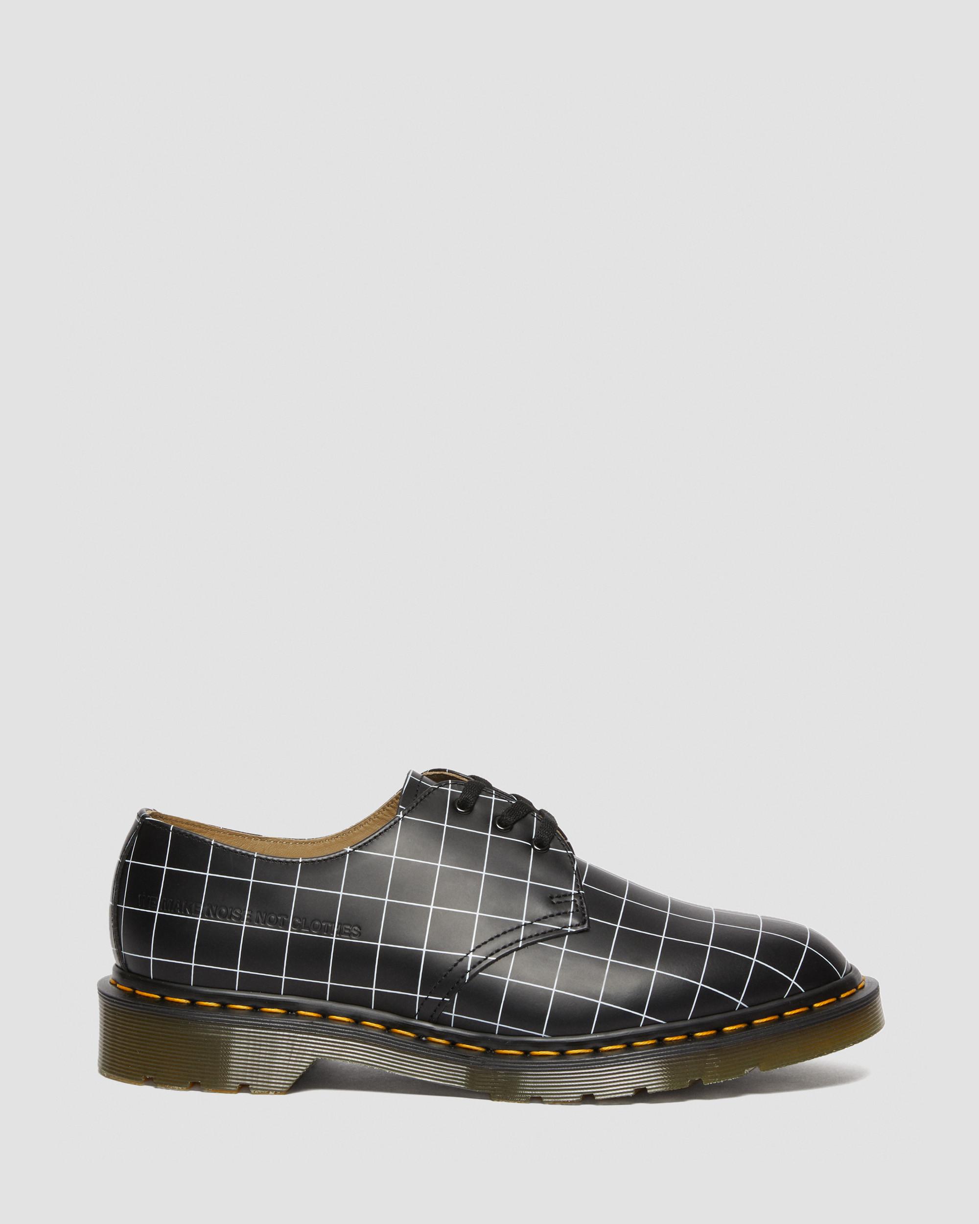 One of our longest-running design partners, Jun Takahashi, returns for a celebration of film and fine craftsmanship. Paying tribute to the Japanese designer??s love of 70s cinema, these 1461 shoes are printed with a distinctive grid check pattern from the Undercover archive and embossed with WE MAKE NOISE NOT CLOTHES, the label??s signature sign-off. Handcrafted in our original Wollaston factory from DM's Smooth leather. Punched with our unmistakable yellow welt stitching.??