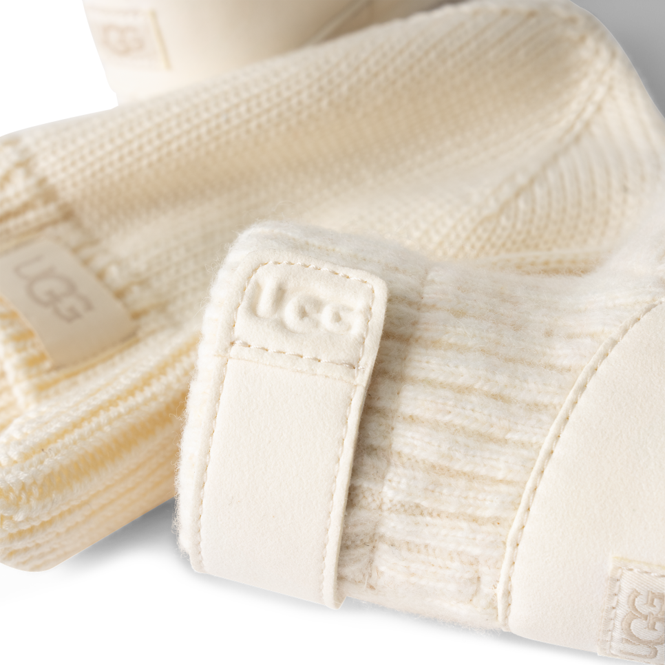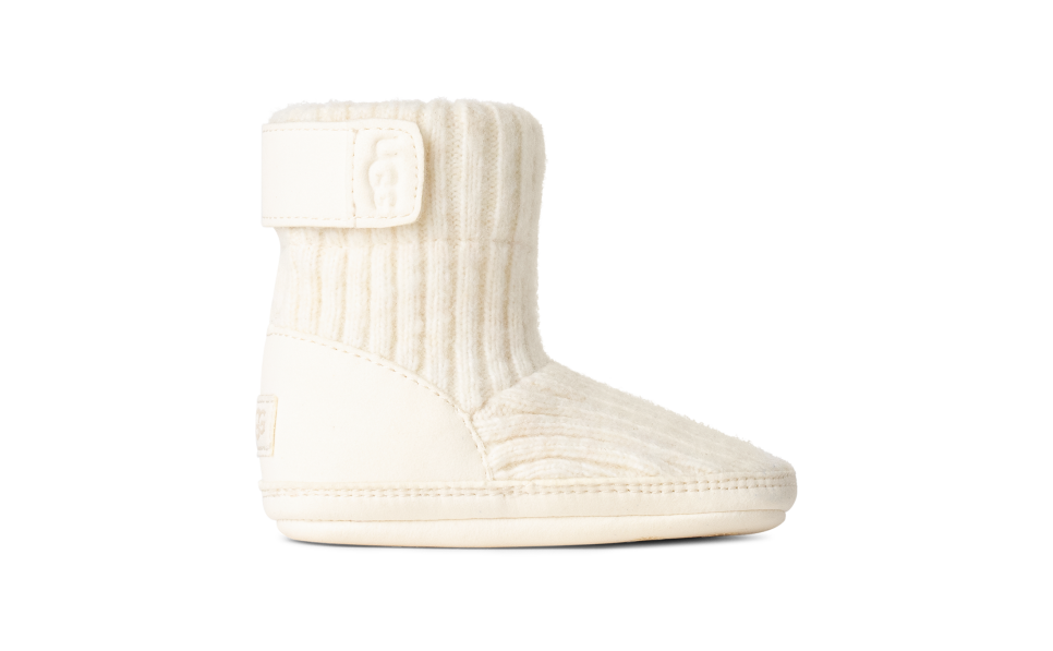 The snUtthhGGly Skylar features a rib knit upper with a hook-and-loop closure, making it easy to take on and off. The inside is finished with 100% recycled polyester, which has been treated to be anti-odor. The microfiber outsole features a slip-resistant rubber print.